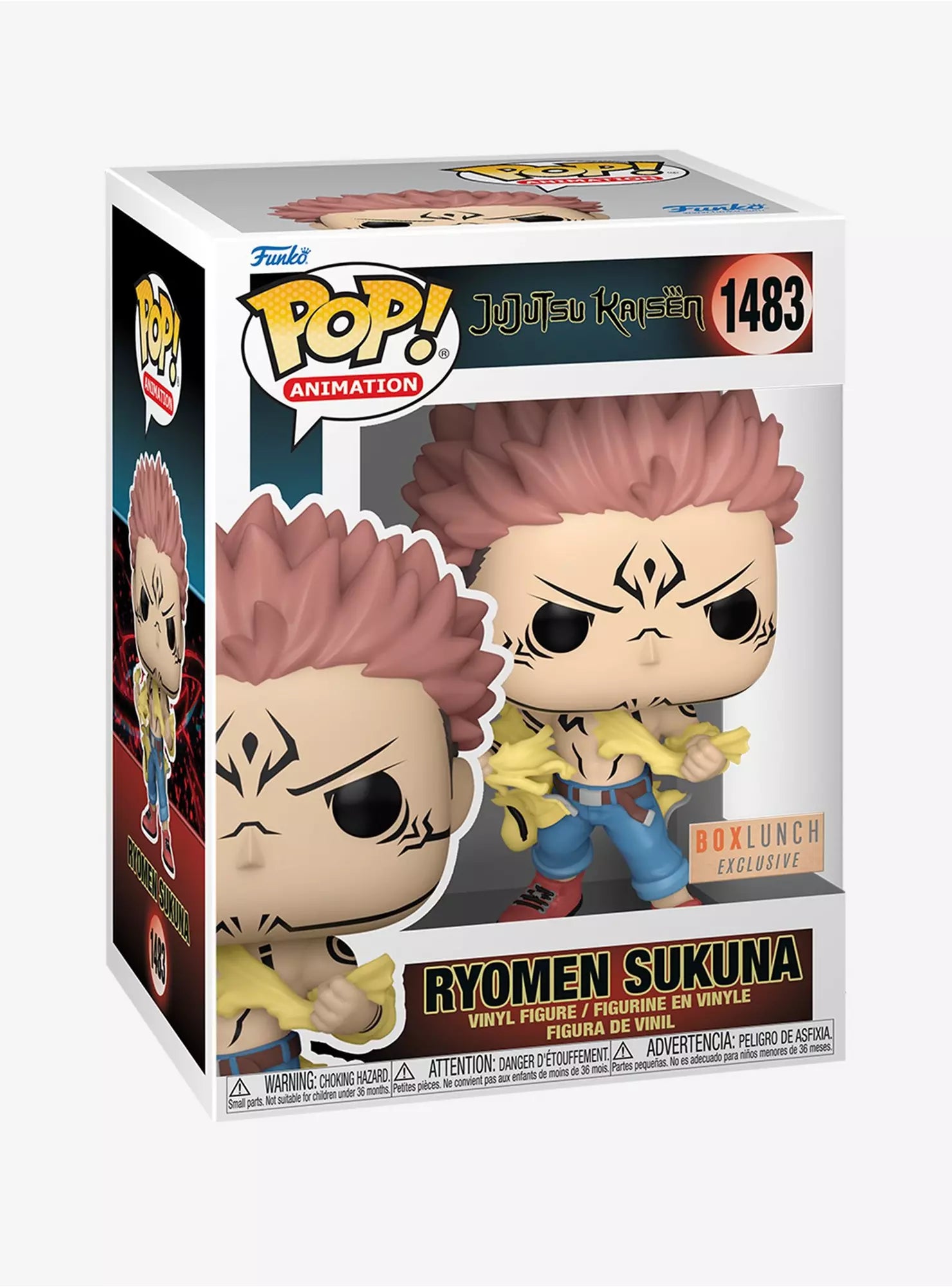 The Funko Pop! Animation Jujutsu Kaisen Ryomen Sukuna Vinyl Figure, a BoxLunch exclusive, stands as a collectible representation of the character from the acclaimed series. Measuring approximately 3.75 inches, this figure is crafted from durable vinyl, making it an ideal addition for collectors and fans of the franchise alike.