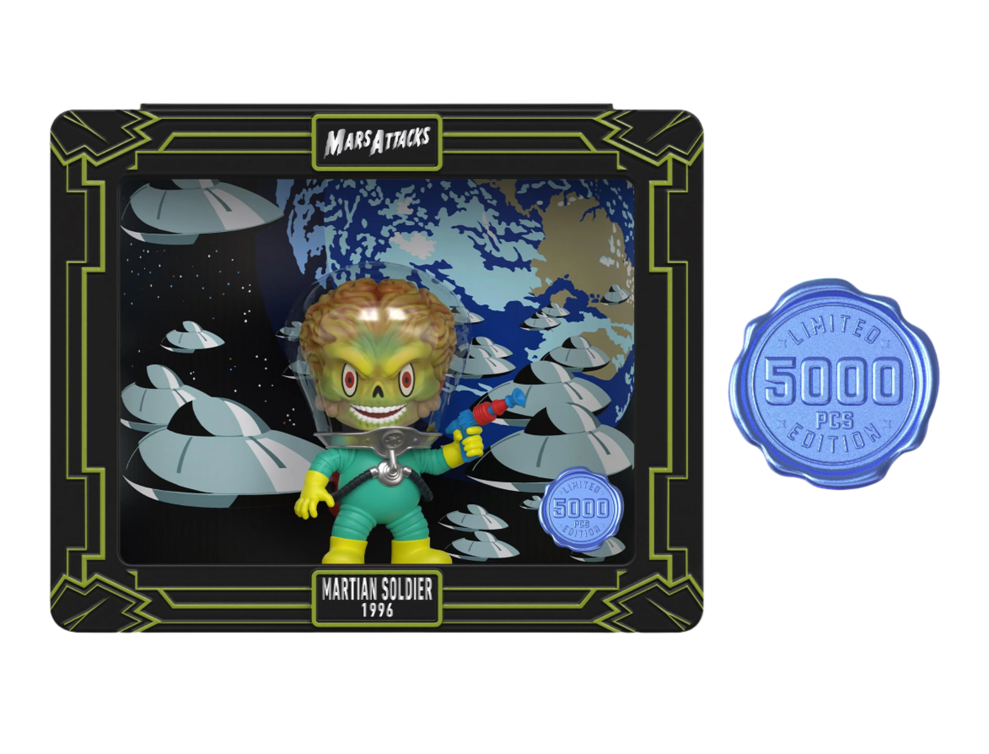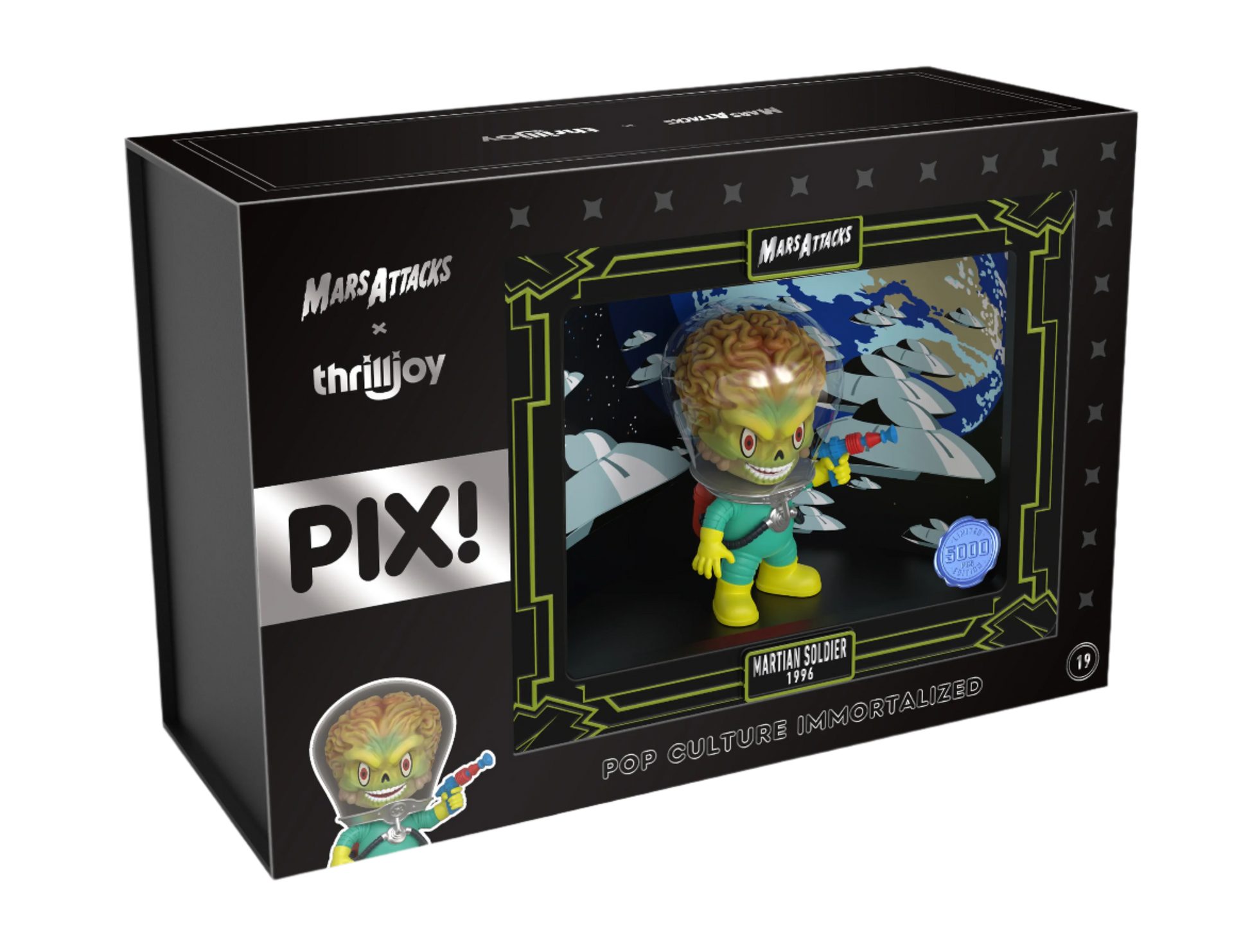Unleash your inner Martian with MARS ATTACKS! PIX! Martian Soldier. Engage in intergalactic battles with this fearsome soldier at your side. Featuring the iconic MARS ATTACKS! design, this figure will bring your collection to life and take you on out-of-this-world adventures.